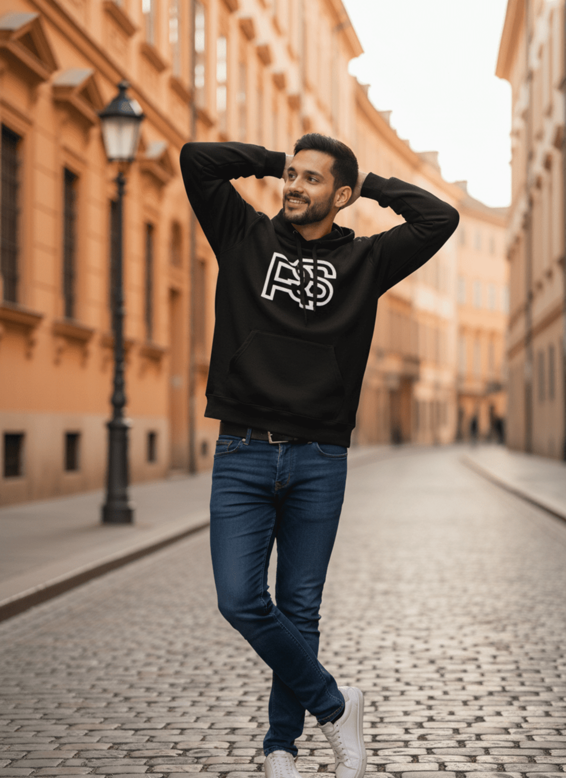 Sudadera Negra con Capucha RS – Estilo Urbano Premium